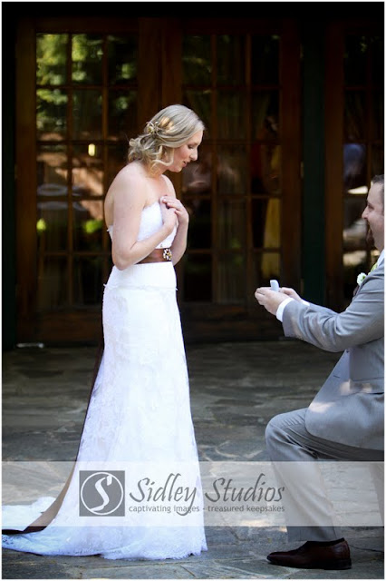 THE FIRST LOOK...We highly recommend a first look for many reasons but we can't promise that every first look will be as special as this one. I love that the bride and groom get a few private moments together before the big event. Of course, I love that we get more time to photograph the bride and groom together. But this first look was even more special because of Jeff's surprise for Darby - I'm not sure of the exact story (my memory is failing me as usual) but what I do know is that Jeff went to great lengths to have a very special ring recreated for Darby and surprised her with it at their first look. It was such a sweet and tender moment!